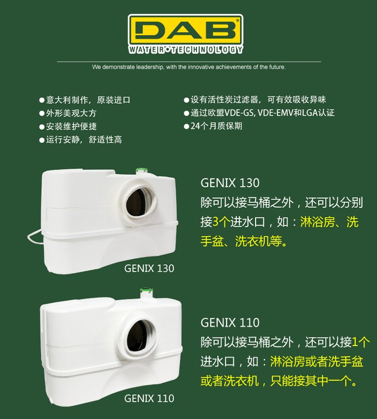 GENIX系列自動污水提升器,是一種自動收集和泵送污水的帶切刀的小型提升泵站。所有有家用衛(wèi)生污水排放需求,但沒有重力排水管或無法連接重力排水管的場合,GENIX就是解決方案
